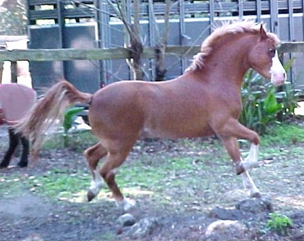 "Razz" is a extraordinary pony, bred from Champion lines, European and American, he has it all, movement, loving attitude,type, and confomation. He has been a proven champion and has a couple Internat'l championships in his record as a two year old. His pedigree is in the blue, Razz has proven that when you are bred from a line of champions, your Get are Champions, Proof His sire, *Springbourne Dazzle has been a multi Supreme Ch. and his sire, Springbourne Caraway has been a halter and ridden champion, Eight times winner of the WPCS Sire Ratings, Reserve Champion Royal Welsh Show 1989, and Mountain and Moorland Ridden Champion National Pony Show 1991, naming a few of his wins. Caraway, being Penal Mark's most successful son. On Razz's Dam side is just as matched. His dam, Heritage Hall Abracadabra is a multi Supreme Ch., as a yearling in 1986, a Supreme Ch. under judge Mrs. Janis Shaneberger, to follow, she was pinned Champion everytime showen, the only mare to ever beat her sire, for a Supreme Champion, which she did many times, also she won many WPCSA Regional Championships. Abracadabra's sire, Majick's Owen Tudar has over 250 Championships in Halter, Riding, and Driving.